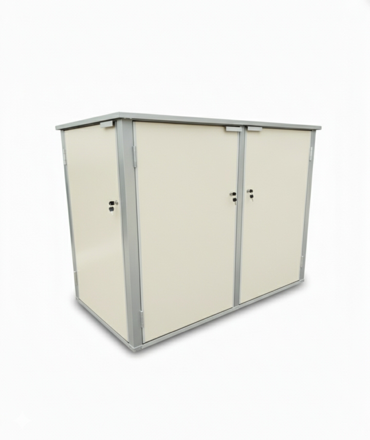 Our products are built to last a lifetime, primarily from durable aluminium. The frame is powder-coated aluminium, and the doors and roofing are made from painted aluminium composite panels, backed by a 5-year warranty against color fading. They’re almost maintenance-free, only requiring regular cleaning. The flooring and shelving are crafted from water-resistant PVC foamboard. Plus, aluminium is a recyclable material!